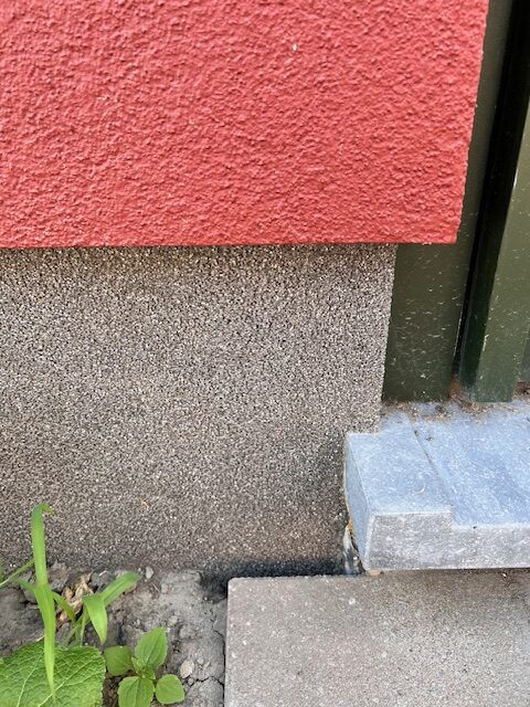 Net als bij al onze projecten werd ook hier aandacht besteed aan de details: de onderzijde van de gevel werd afgewerkt met een granietpleister plint, wat niet alleen een elegante uitstraling geeft maar ook extra bescherming biedt tegen vuil en opspattend water.